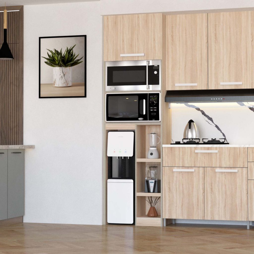 Rak terbuka ini didesain untuk menaruh peralatan elektronik dapur seperti microwave dan oven. Dengan posisi yang mudah dijangkau, kegiatan memasak menjadi lebih efisien.